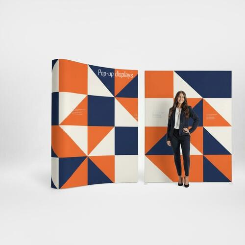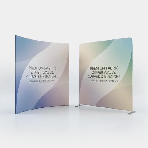La nostra parete espositiva mobile è costituita da un sistema a griglia pieghevole in metallo e da una parete in tessuto in poliestere da 250 g/m² stampabile frontalmente in quattro colori. La parte stampata dell'espositore pieghevole monofacciale è realizzata con lo stesso materiale dei nostri desk pubblicitari, degli espositori pop up e dei roll up. La combinazione fra prodotti differenti crea un insieme armonico all'interno dello stand, contribuendo così a realizzare un design uniforme dei singoli elementi. Riproduci fedelmente il design della parete espositiva oppure trai ispirazione da colori, font o grafiche di altre dotazioni fieristiche.Le nostre pareti vengono fornite piegate in un trolley per il trasporto, consentendone così l'impiego flessibile in diverse occasioni. Al momento dell'ordine, puoi inoltre decidere di acquistare due lampade alogene abbinate da fissare al bordo superiore dell'espositore pieghevole monofacciale per illuminare verso il basso la parte anteriore stampata.