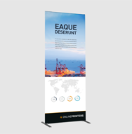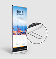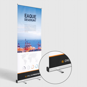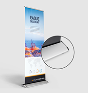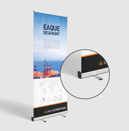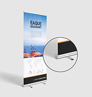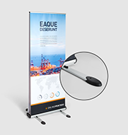 I nostri sistemi roll up si compongono di un telaio in alluminio, tre sottili aste nello stesso materiale e un banner pubblicitario in PVC, tessuto di poliestere o pellicola di poliestere. Il sistema può essere installato rapidamente senza lausilio di utensili e, con un peso di appena cinque chili, può essere facilmente spostato utilizzando lesclusiva borsa da trasporto. Per ogni sistema è possibile scegliere tra la variante con stampa solo fronte o fronte-retro, ossia sistemi che possono essere dotati di uno o due banner (fronte e retro). Tutti i roll up banner vengono stampati solo fronte a quattro colori e possono essere usati come espositori per interni ed esterni.