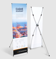 Per i nostri banner X e L puoi scegliere il solo roll up banner oppure un sistema completo che include stampa e telaio. La differenza tra i banner X e L è visibile solo da dietro, nella struttura delle aste sulla parte posteriore del roll up. Mentre i primi hanno un telaio a forma di X, lasta dei secondi assomiglia appunto alla lettera L, soprattutto grazie alla barra che sporge dal terreno. I banner X ed L sono disponibili negli stessi materiali degli altri roll up di nostra produzione. In aggiunta è possibile optare per la tela canvas, la cosiddetta tela pittorica.