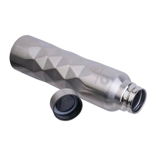 - Borraccia monostrato in acciaio inox riciclato da 1.000 mlBorraccia monostrato realizzata in acciaio inox riciclato 304, dotata di un pratico tappo con cordino per il trasporto
