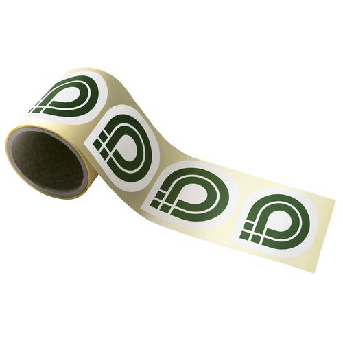 - se non si sceglie la suddivisione in strisce, si riceverà un rotolo di 33 cm con un diametro interno di 7,6 cm; in questo modo gli adesivi sono disposti uno accanto all’altro.