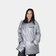 Giacca antipioggia reversibile nera/argento con cappuccio e tasche.