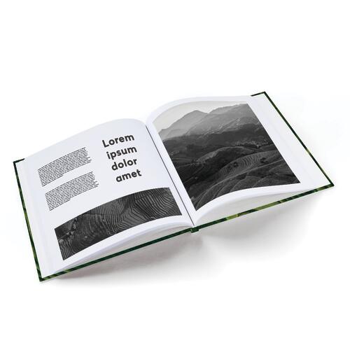 - Libro con copertina rigida in formato verticale, con dorso diritto e angoli a punta, incluso capitello bianco