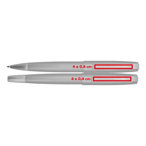 • Include due eleganti penne in metallo con clip largo – penna a sfera & roller