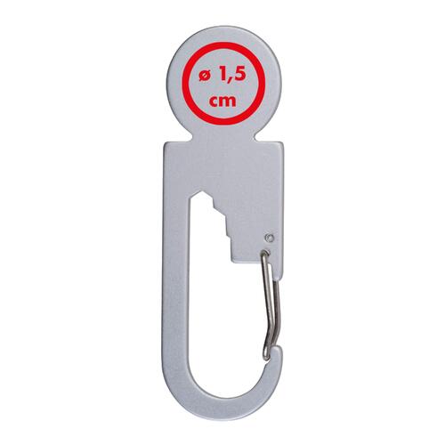 - Multitool in alluminio con sgancio per carrello della spesa, tre chiavi esagonali di diverse dimensioni e un moschettone