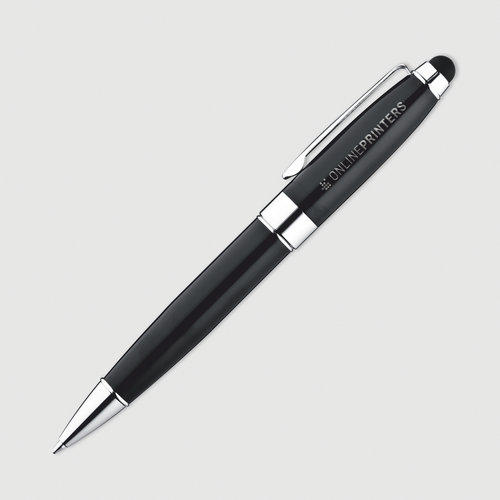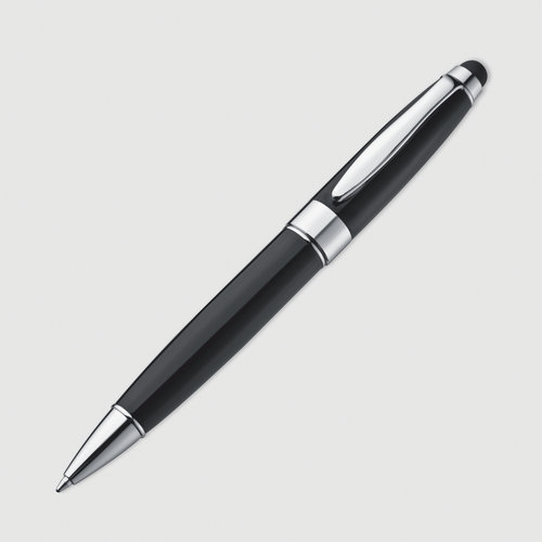 penna a sfera dal design classico, con apertura a rotazione e punta in gomma per consentirne l’utilizzo come touch pen