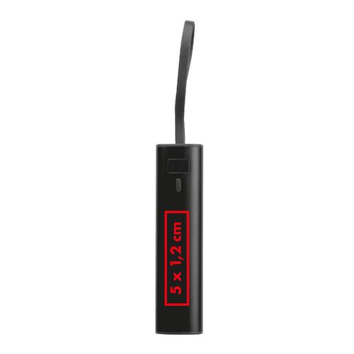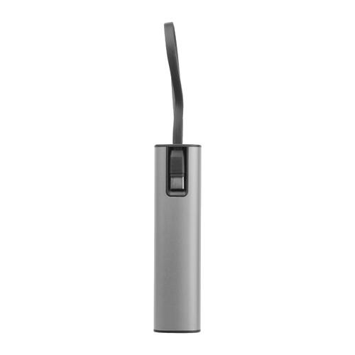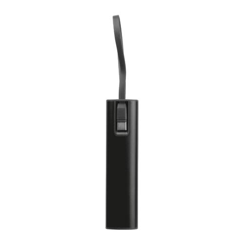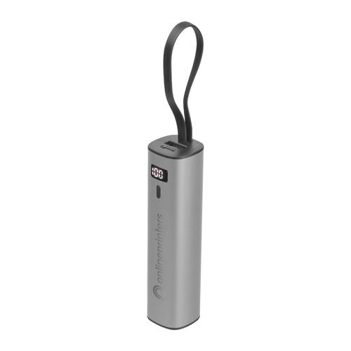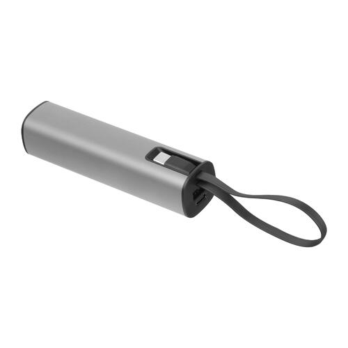 - Powerbank in alluminio con batteria al litio da 5.000 mAh, indicatore di carica e cavo di ricarica USB-C integrato