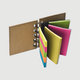 piccolo quaderno con segnapagina adesivi colorati (25 per colore) e foglietti adesivi gialli, rosa e verdi (25 per colore)