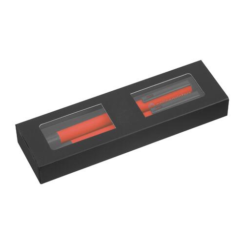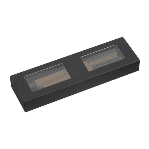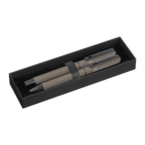 - Set da scrittura composto da un rollerball con inchiostro nero e una penna a scatto con inchiostro blu (cartuccia grande in plastica) e una confezione