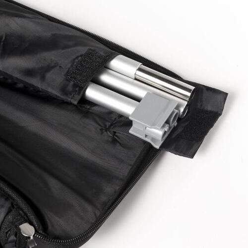 - Sistema rollup standard in alluminio, con banner stampato, „palo“ in 3 pezzi e comoda custodia