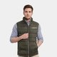 Gilet imbottito color oliva in materiale leggero con zip integrale da uomo.