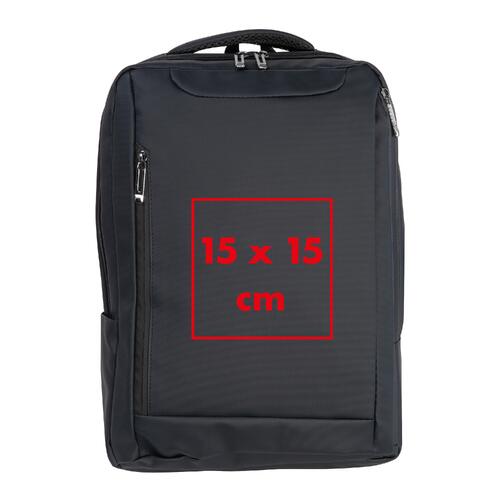- Dispone di due tasche frontali con cerniera, un ampio scomparto principale imbottito per il laptop, diverse tasche interne, spallacci imbottiti, manico e una fascia posteriore per il fissaggio al trolley